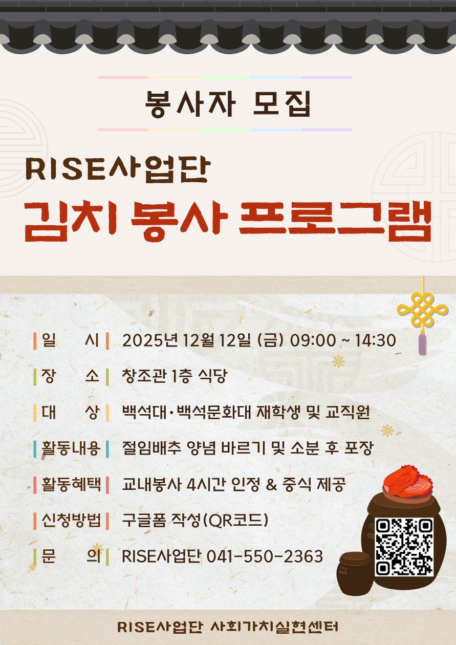 [RISE사업단] 김치 봉사 프로그램 봉사자 모집 안내