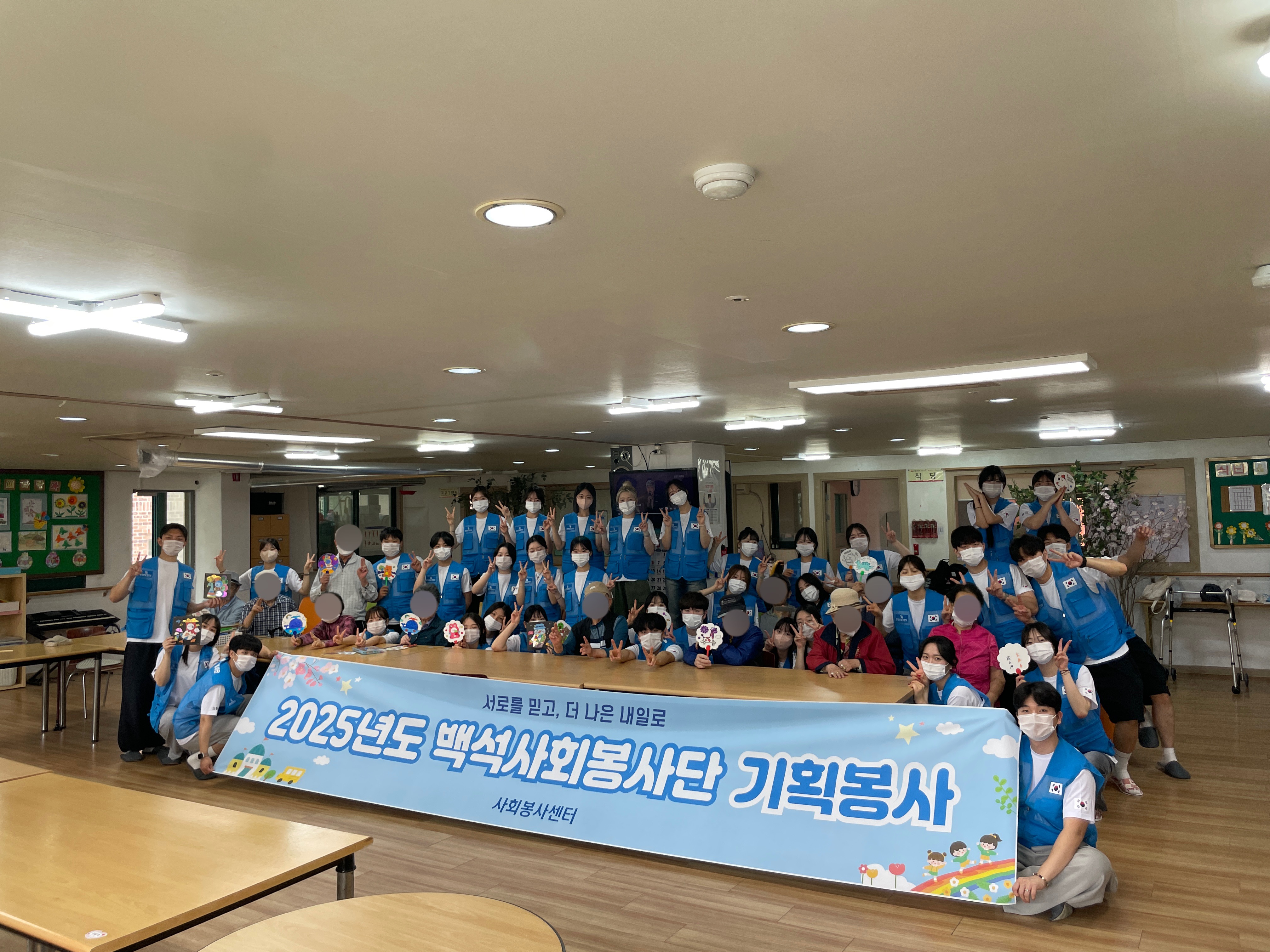 2025년 5월 31일, 백석사회봉사단은 두 번째 기획봉사로 천안에 위치한 금빛사랑노인주간보호센터를 방문하여 어르신들과 함께 뜻깊은 시간을 보냈다. 이번 봉사는 쾌적한 주거환경 조성과 치매 예방을 위한 프로그램을 중심으로 진행되었으며, 단원들과 어르신들이 함께 어우러져 따뜻한 추억을 만들었다.